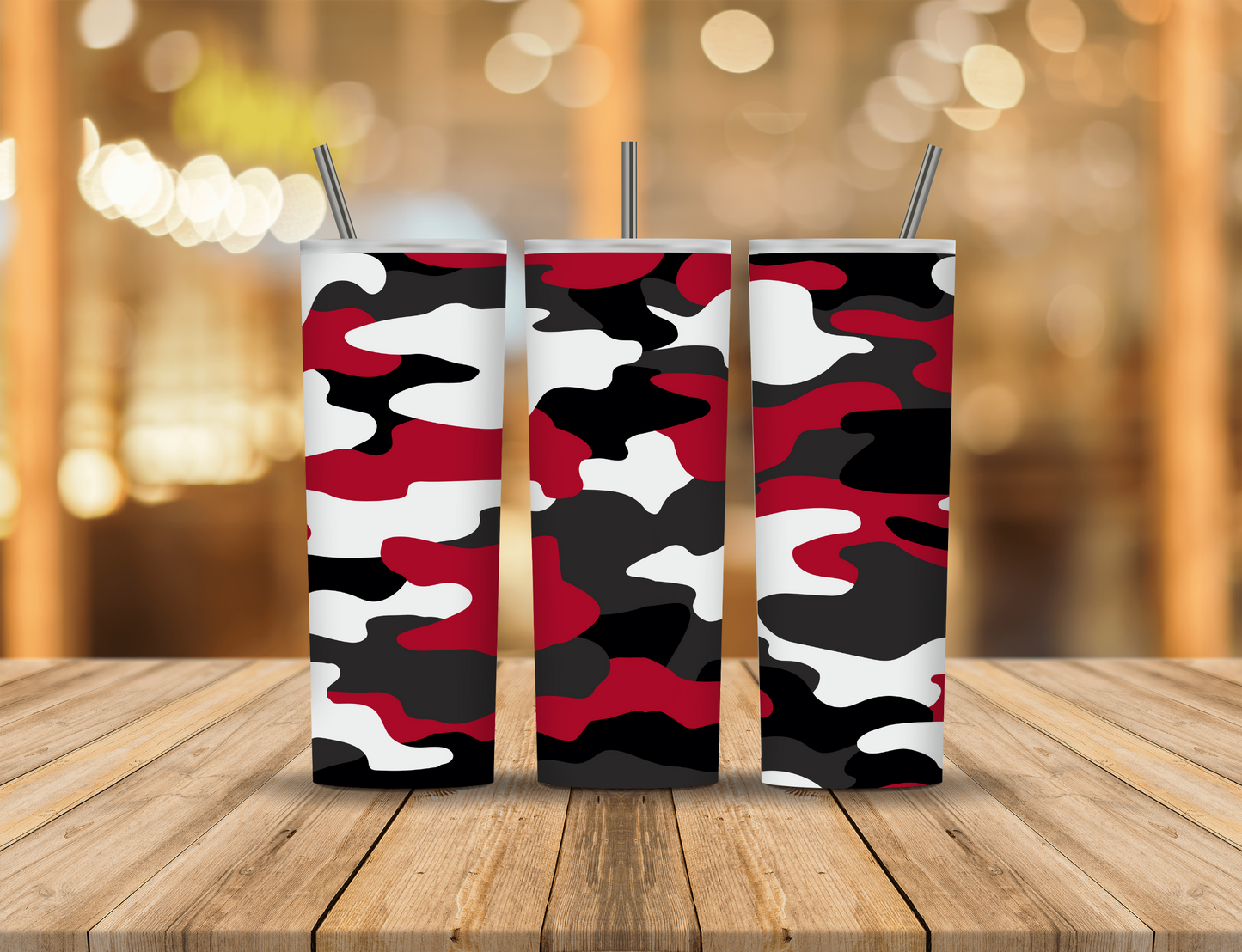 Black Red White Camo 20 oz Tumbler Design Digital Download #228